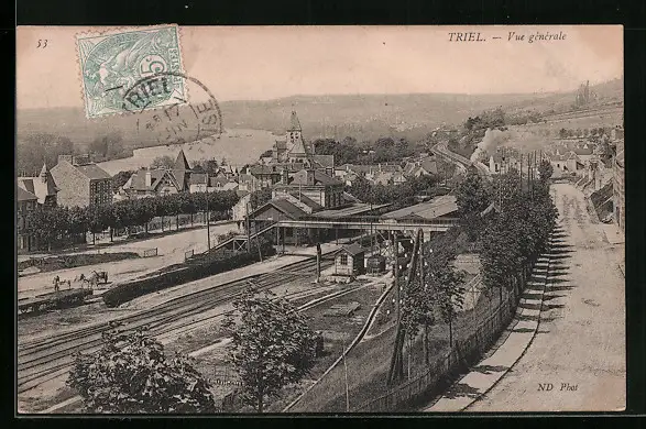 AK Triel, Vue générale, Teilansicht mit Bahnhof