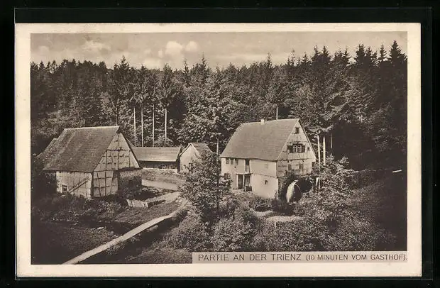 AK Trienz, Partie an der Trienz mit Pension-Restaurant zur Pfalz, Besitzer: Adam Münch
