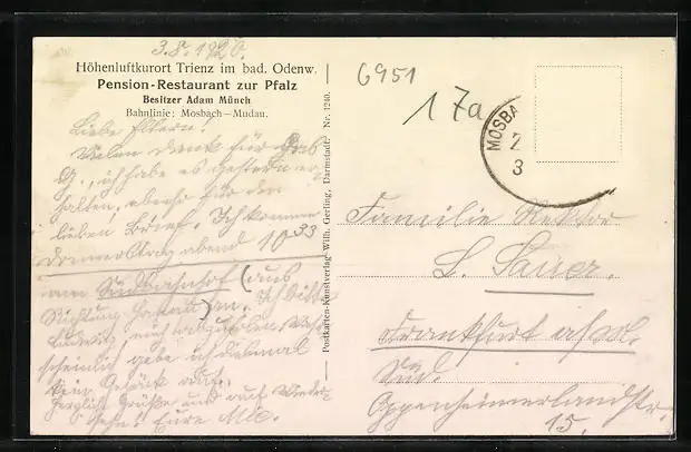 alte Ansichtskarte, gelaufen 1920, Briefmarke entfernt, guter Zustand