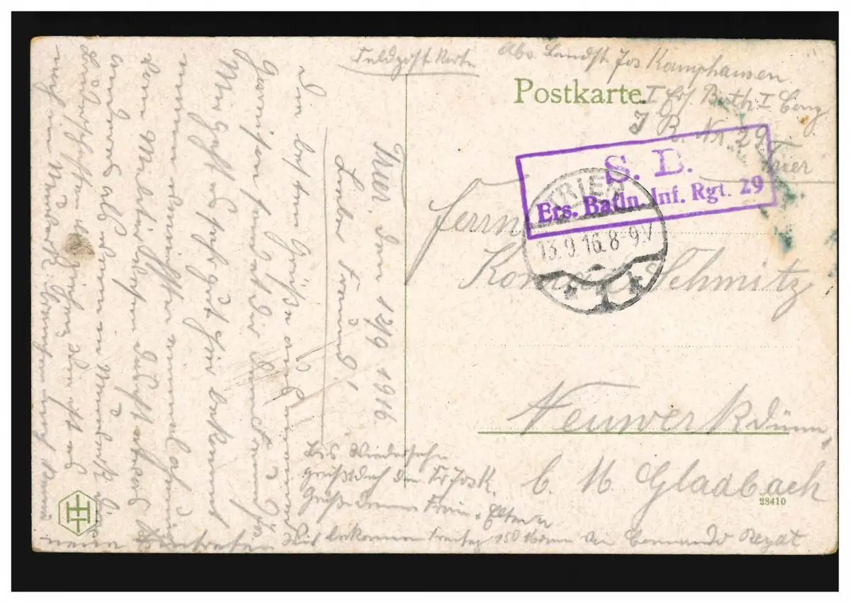 AK Trier: Eingang zum Amphitheater, Feldpost TRIER 13.9.16 mit BS Inf.-Reg. 29