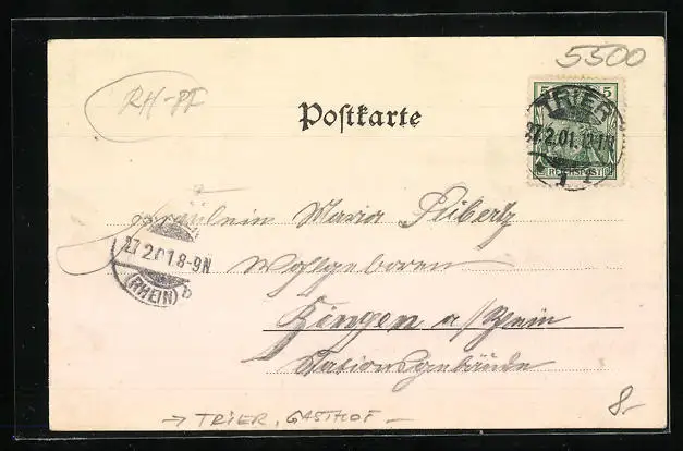 AK Trier, Gruss aus dem Gasthof Bellevue