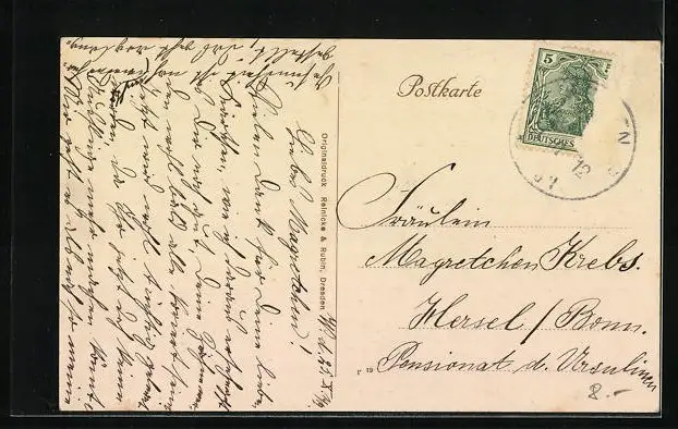 alte Ansichtskarte, gelaufen 1912, Briefmarke entfernt, guter Zustand