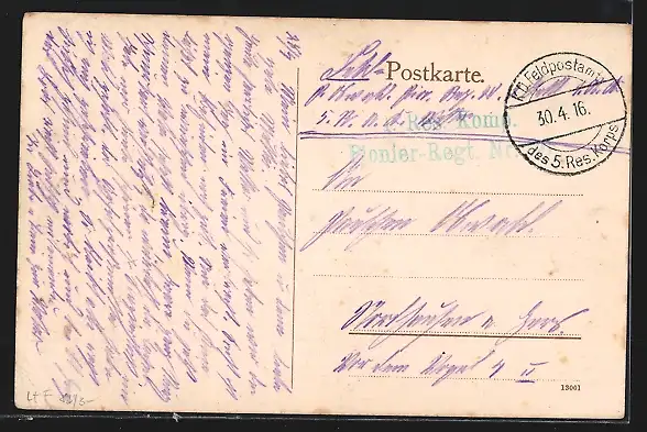 alte Ansichtskarte, gelaufen 1916, Eckknick oben rechts, guter Zustand
