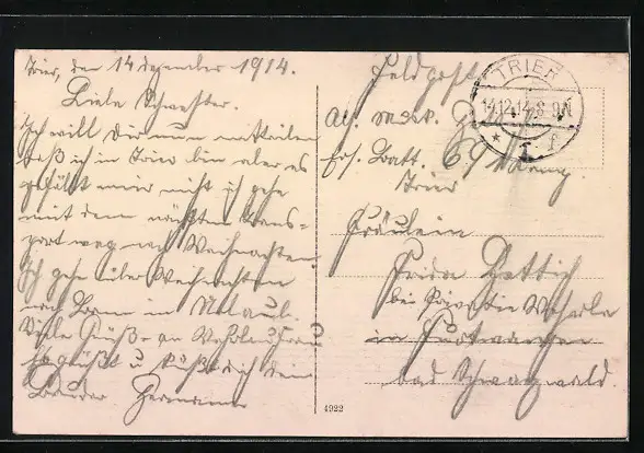 alte Ansichtskarte, gelaufen 1914, Stempelspur, Eckknick rechts unten, guter Zustand
