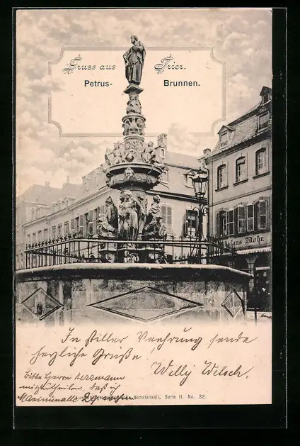 AK Trier, Petrus Brunnen und Haus Mohr