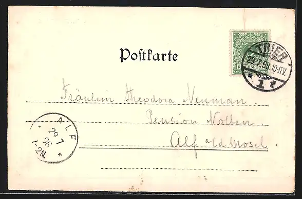 alte Ansichtskarte, gelaufen 1898, Bugspur oberer Rand links, guter Zustand
