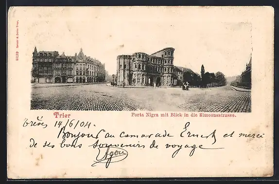 AK Trier, Porta Nigra mit Blick in die Simeonsstrasse