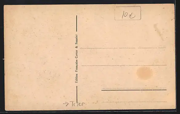 Personenbezogene Daten auf der Rückseite der Karte wurden durch blauen Textmarker unkenntlich gemacht. Die blauen Stellen sind auf die Vorderseite durchgeweicht und wirken sich negativ auf das Postkartenfoto aus
