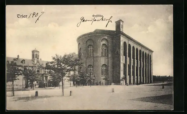 AK Trier, Strassenpartie mit Basilika