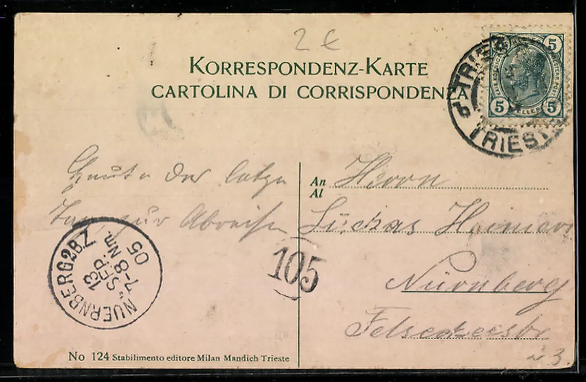gelaufen 1905, Abriebspuren Rand oben, Stempelspur, guter Zustand