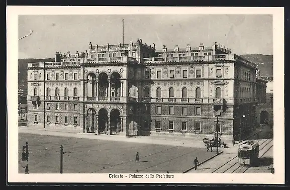 AK Trieste, Palazzo della Prefettura, Strassenbahn