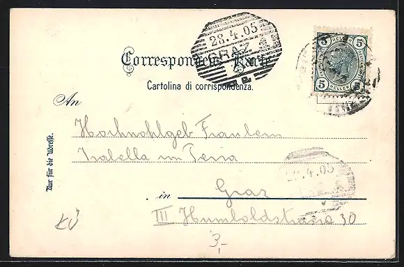 alte Ansichtskarte, gelaufen 1905, Stempelspur, guter Zustand