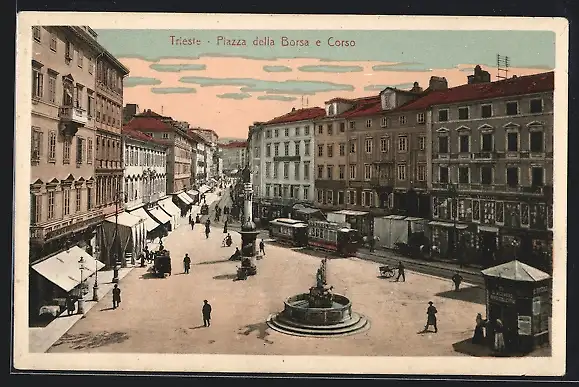 AK Trieste, Piazza della Borse e Corso, Strassenbahn