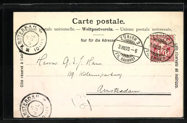 alte Ansichtskarte, gelaufen 1903, Stempelspur, guter Zustand