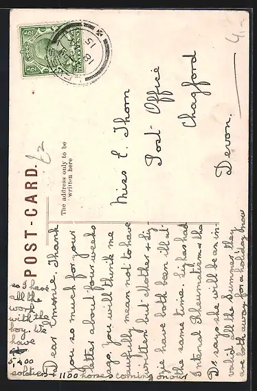 gelaufen 1915, Eckknick oben li., guter Zustand