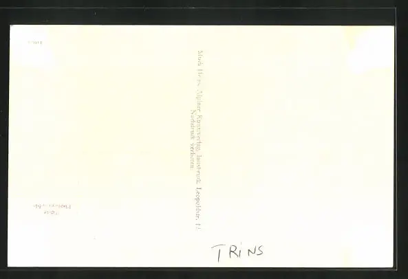 Personenbezogene Daten auf der Rückseite der Karte wurden durch blauen Textmarker unkenntlich gemacht. Die blauen Stellen sind auf die Vorderseite durchgeweicht und wirken sich negativ auf das Postkartenfoto aus