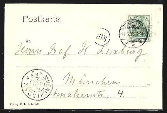 alte Ansichtskarte, gelaufen 1906, Eckknick li. oben, guter Zustand