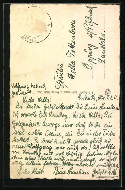 alte Ansichtskarte, gelaufen, Briefmarke entfernt, Eckknicke oben und rechts unten, guter Zustand