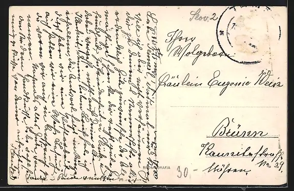 alte Ansichtskarte, gelaufen, Briefmarke entfernt, guter Zustand