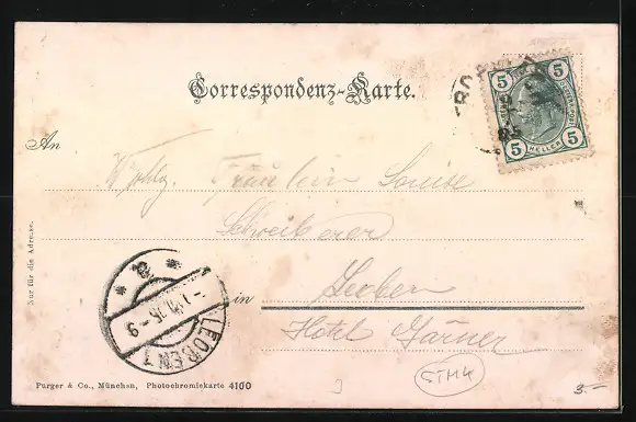 alte Ansichtskarte, gelaufen 1905, Stempelspur, guter Zustand