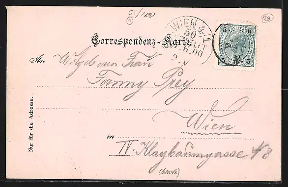 alte Ansichtskarte, gelaufen 1900, Stempelspur, guter Zustand