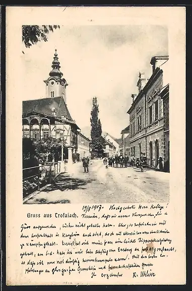 AK Trofaiach, Strassenpartie mit Kirchturm
