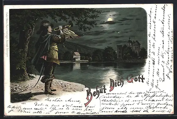 AK Trompeter von Säckingen am Ufer, Behüt Dich Gott!