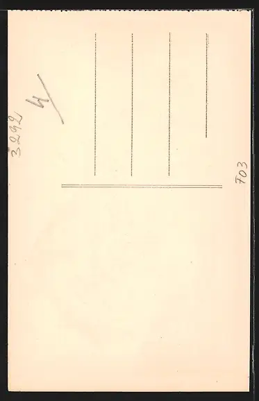Personenbezogene Daten auf der Rückseite der Karte wurden durch blauen Textmarker unkenntlich gemacht. Die blauen Stellen sind auf die Vorderseite durchgeweicht und wirken sich negativ auf das Postkartenfoto aus