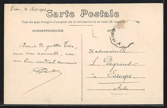 alte Ansichtskarte, gelaufen, Briefmarke entfernt, rückseitig Oberflächenschaden, guter Zustand
