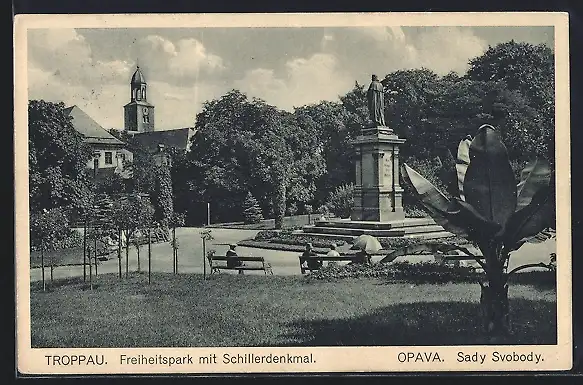 AK Troppau, Freiheitspark mit Schillerdenkmal