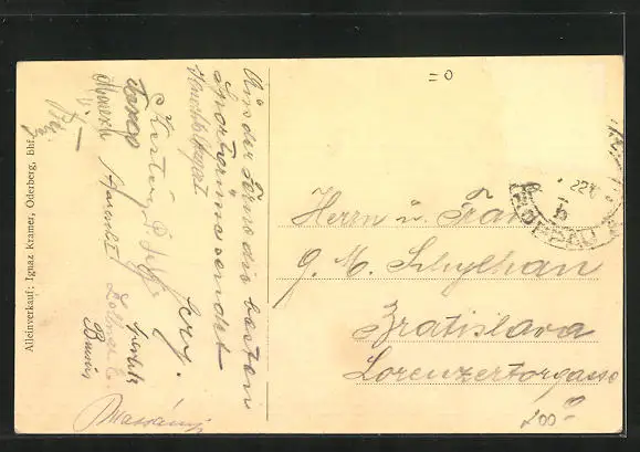 alte Ansichtskarte, gelaufen, Briefmarke entfernt, rückseitig Oberflächenschaden, guter Zustand