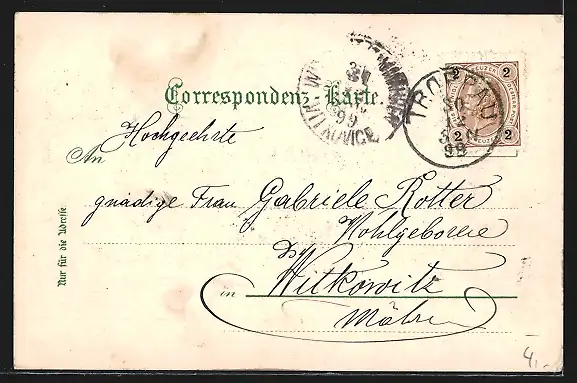 alte Ansichtskarte, gelaufen 1899, Stempelspur, guter Zustand