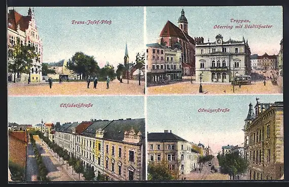 AK Troppau, Oberring mit Stadttheater, Elisabethstrasse und Olmützerstrasse
