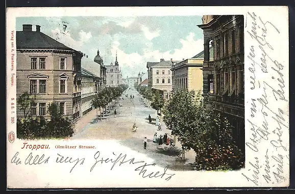 AK Troppau, Olmützerstrasse aus der Vogelschau