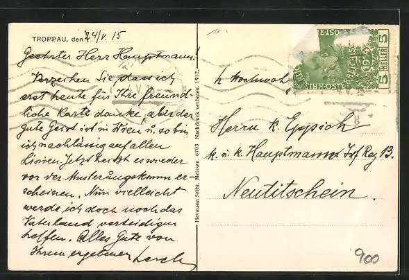 AK Troppau, Olmützerstrasse mit Friseur-Salon