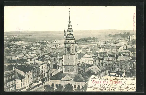 AK Troppau /Opava, Blick auf Stadtturm aus der Vogelschau