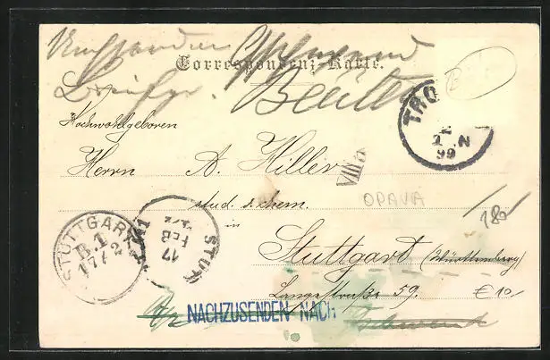gelaufen 1899, Briefmarke entfernt, guter Zustand