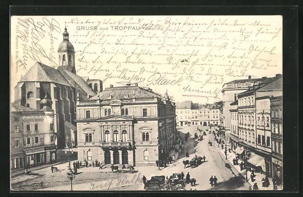 AK Troppau /Opava, Blick auf den Oberring mit Theater