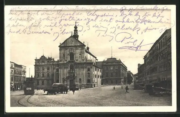 AK Troppau /Opava, Jesuitenkirche mit Strassenbahn