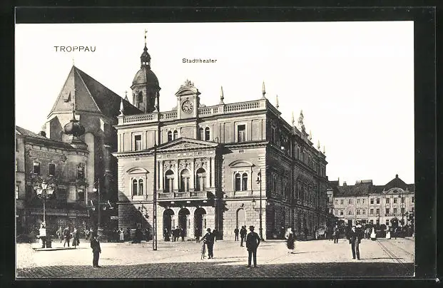 AK Troppau /Opava, Platz vor dem Stadttheater