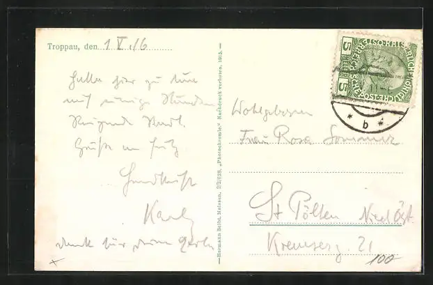 alte Ansichtskarte, gelaufen 1916, Stempelspur, guter Zustand