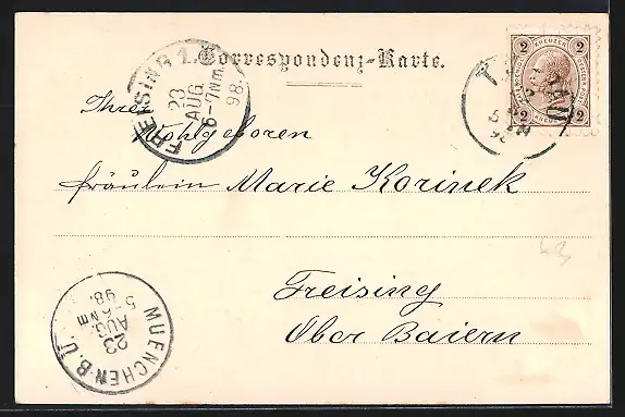 alte Ansichtskarte, gelaufen 1898, Stempelspur, guter Zustand