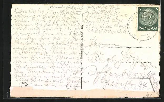 alte Ansichtskarte, gelaufen, rückseitig Klebe- und Papierreste, sonst guter Zustand