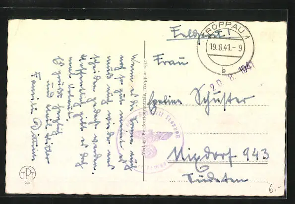 alte Ansichtskarte, gelaufen als Feldpost 1941, Eckknick re.-oben, sonst guter Zustand