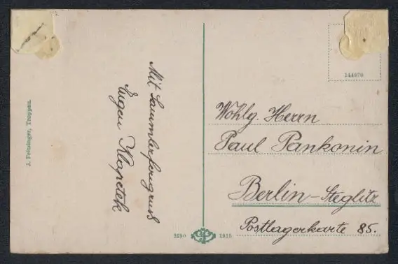 gelaufen 1920, vorder- u. rückseitig Klebe- und Papierreste, Eckknick li. unten, guter Zustand