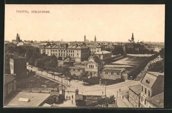 AK Troppau, Strasse Schlossring mit Gebäudeansicht