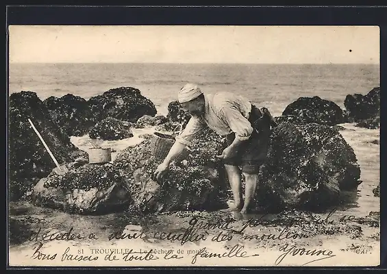 AK Trouville, Le pecheur de moules, Muscheln