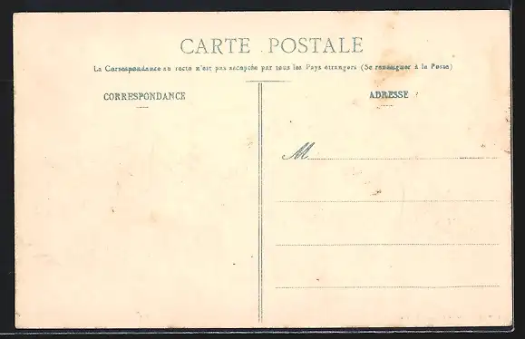 Personenbezogene Daten auf der Rückseite der Karte wurden durch blauen Textmarker unkenntlich gemacht. Die blauen Stellen sind auf die Vorderseite durchgeweicht und wirken sich negativ auf das Postkartenfoto aus