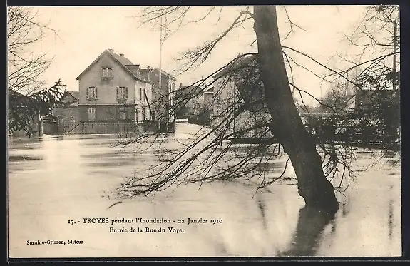AK Troyes, Inondations 1910, Entrée de la Rue du Voyer