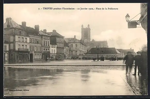 AK Troyes, Inondations 1910, Place de la Préfecture